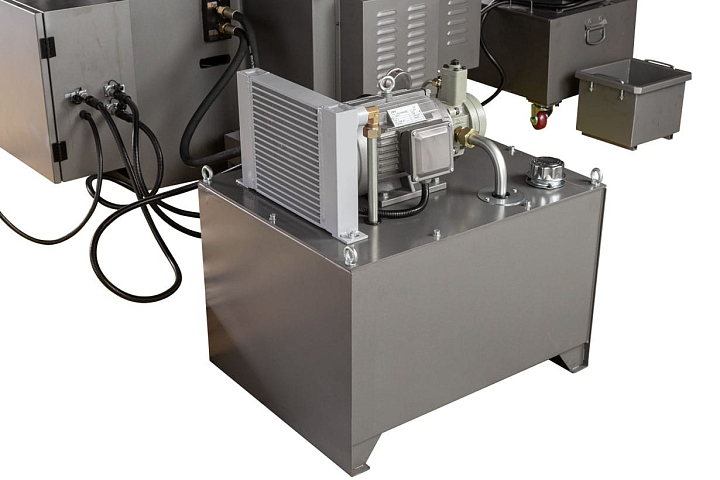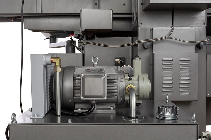За вращение шпинделя отвечает главный двигатель мощностью 4000 Вт. Мощность двигателя гидростанции 2200Вт. Мощность насоса подачи СОЖ - 125Вт.