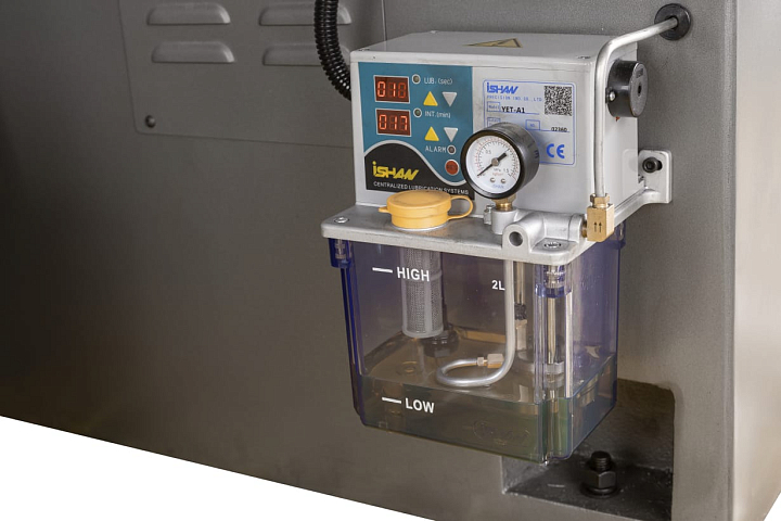 Частота оборотов шпинделя шлифовального круга у JPSG-1640SG постоянна и составляет 1450 об/мин, оптимально подобранный диаметр шлифовального круга - 350 мм. Точность подачи круга к заготовке соответствует классу прецизионного оборудования - 0,005 мм (5мкм). Как и все станки данного класса, JPSG-1640SG оборудован системой автоматической смазки всех критически важных узлов и агрегатов, в том числе и направляющих стола, через предусмотренные смазочные каналы.