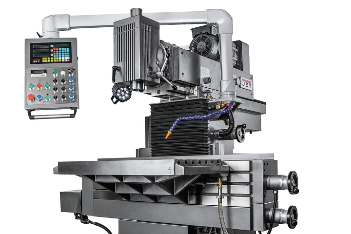 Особенности:Широкоуниверсальный фрезерный станок JET JUTM-1834 Servo DRO – мощный и производительный станок в линейке оборудования компании. Он удовлетворит требованиям самого взыскательного заказчика и рассчитан на тяжелые условия эксплуатации и длительные нагрузки. Станок предназначен для всевозможных видов фрезерной обработки, сверления, растачивания и прочих операций в любом координатном направлении и может достигнуть высокой точности. Имеет горизонтальный и вертикальный рабочие столы, что существенно расширяет круг задач и операций при производстве оснастки, инструментов, приспособлений, пресс-форм и других деталей сложных форм, мелкими сериями на механообрабатывающих, инструментальных и ремонтно-механических участках.
