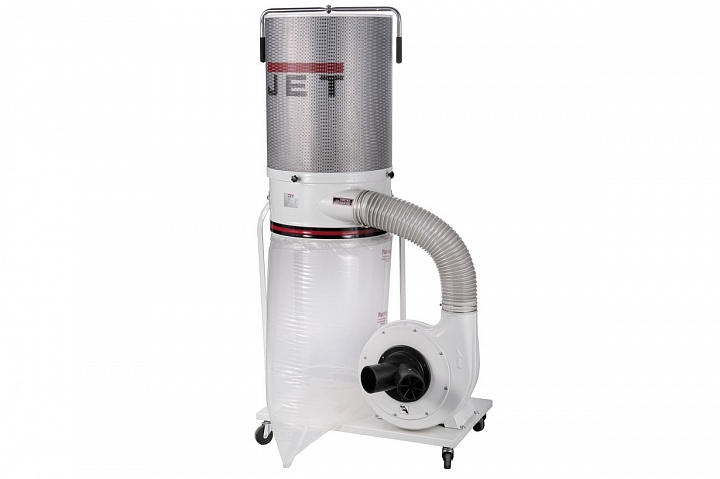 Мощная производительная вытяжная установка Jet DC-1100CK для профессиональной эксплуатации с деревообрабатывающим оборудованием всех типов. Модель комплектуется высокоэффективным фильтрующим картриджем, способным удерживать частицы диаметром от 2 мкм, что является на сегодня самым передовым стандартом. Другая важная особенность – высокая фактическая емкость пылесборника, которая достигается благодаря применению новой технологии Vortex Cone. Ее суть в организации воздушного потока внутри сепаратора таким образом, чтобы выпавшие в осадок частицы не подхватывались вновь, что способствует более плотной укладке мусора и уменьшению отложений в выходном фильтре (его очистка производится стряхиванием при повороте специальной ручки). Эти особенности позволяют использовать DC-1100CK на одном уровне с более мощными моделями классической конструкции, не имеющих конуса для разделения объемов накопления и сепарации.